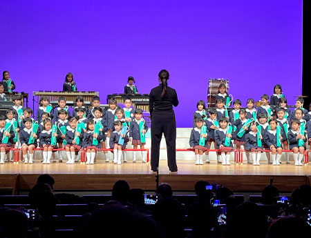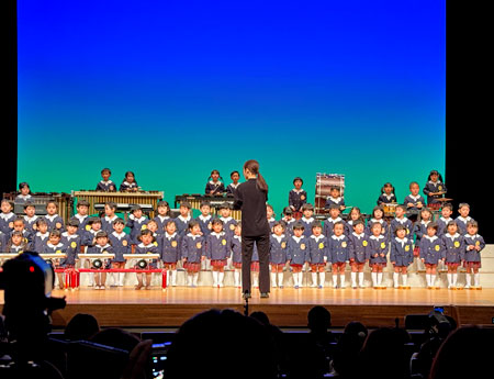 | 関内ホールで生活発表会を行いました。 たくさんのおうちの人の前で合唱、合奏、遊戯と日頃の成果をバッチリ披露しました。 |